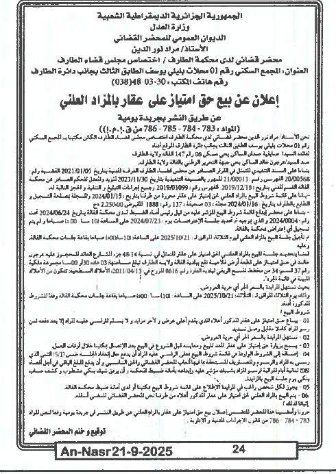 Il sera procédé à la vente au plus offrant et dernier enchérisseur le :