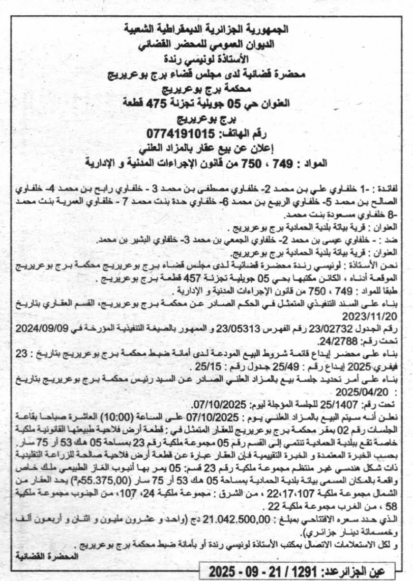 Il sera procédé à la vente au plus offrant et dernier enchérisseur le :