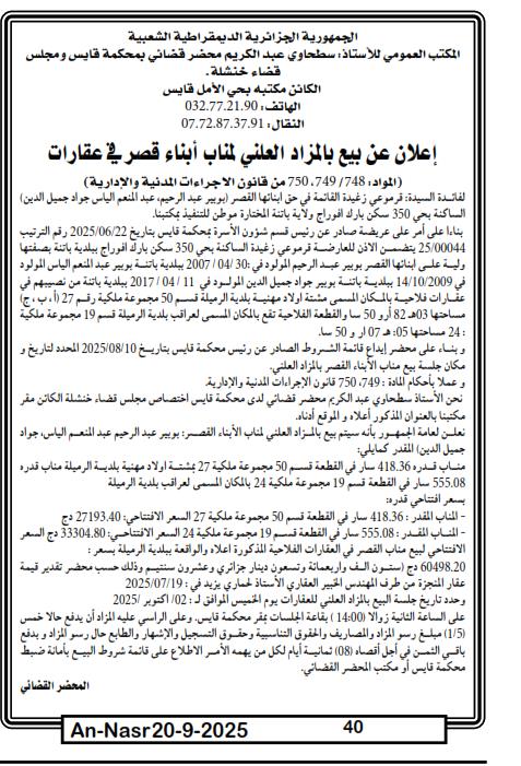 Il sera procédé à la vente au plus offrant et dernier enchérisseur le :