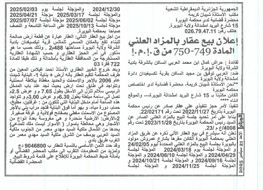 Il sera procédé à la vente au plus offrant et dernier enchérisseur le :