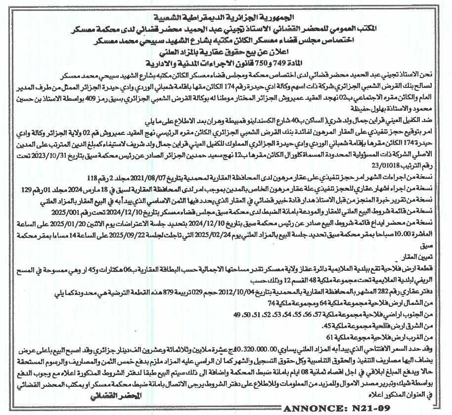 • Wilaya :Mascara