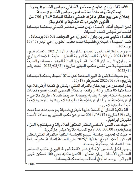 | Wilaya : MSila | |