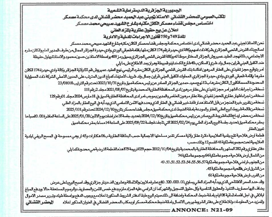 Il sera procédé à la vente au plus offrant et dernier enchérisseur le :