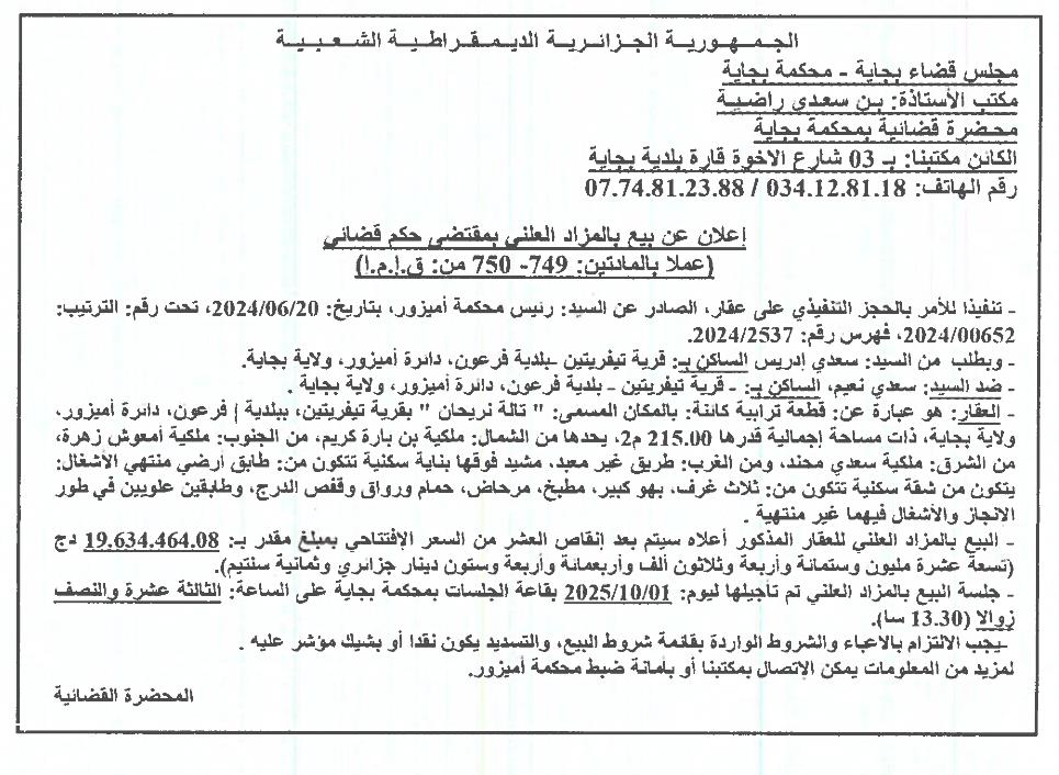 Il sera procédé à la vente au plus offrant et dernier enchérisseur le :