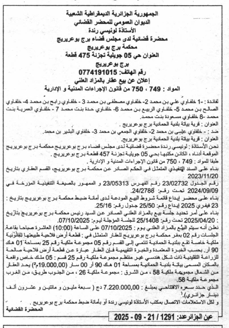 Il sera procédé à la vente au plus offrant et dernier enchérisseur le :