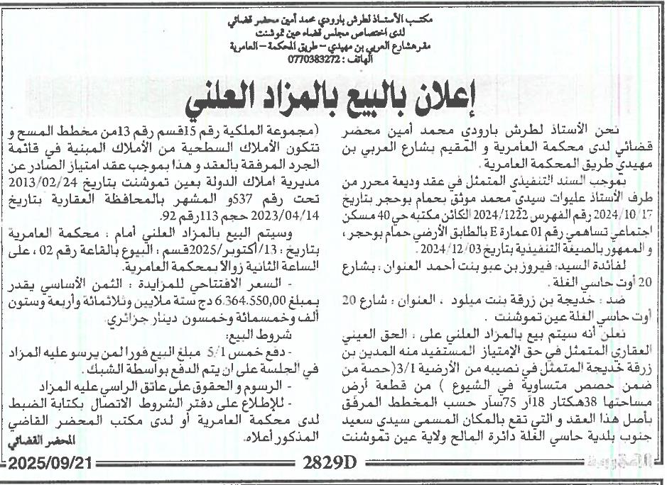 Il sera procédé à la vente au plus offrant et dernier enchérisseur le :
