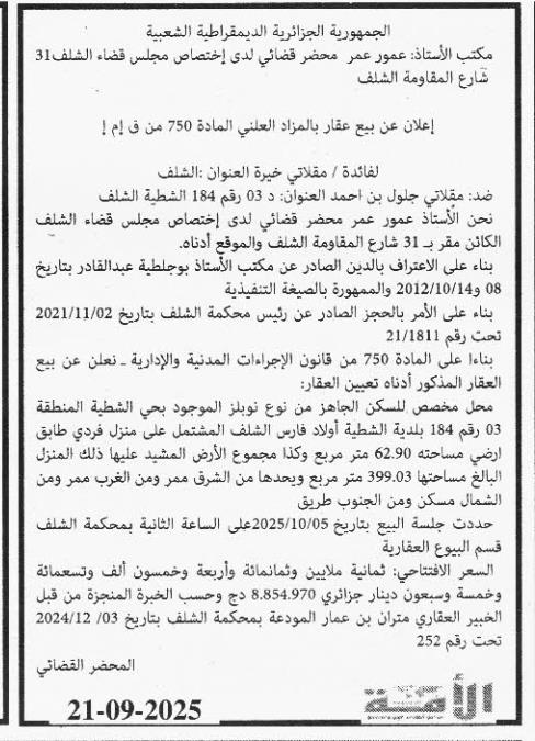 | Wilaya : Chlef | |