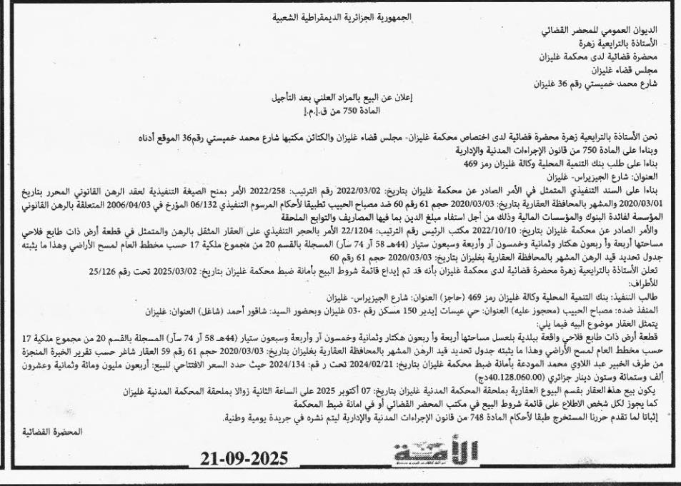 Il sera procédé à la vente au plus offrant et dernier enchérisseur le :