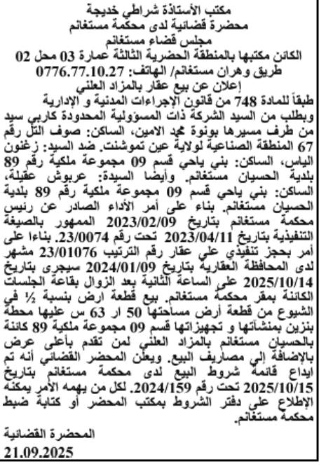 Il sera procédé à la vente au plus offrant et dernier enchérisseur le :