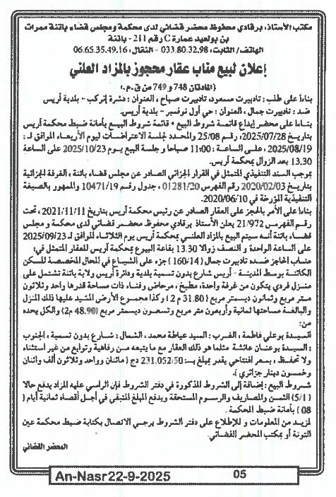 Il sera procédé à la vente au plus offrant et dernier enchérisseur le :