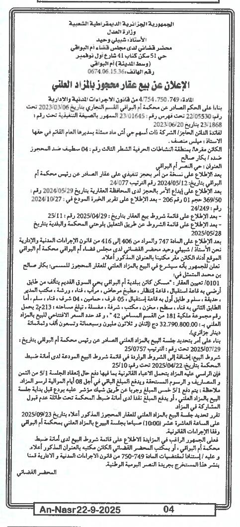 | Paru dans le journal : النصر | |