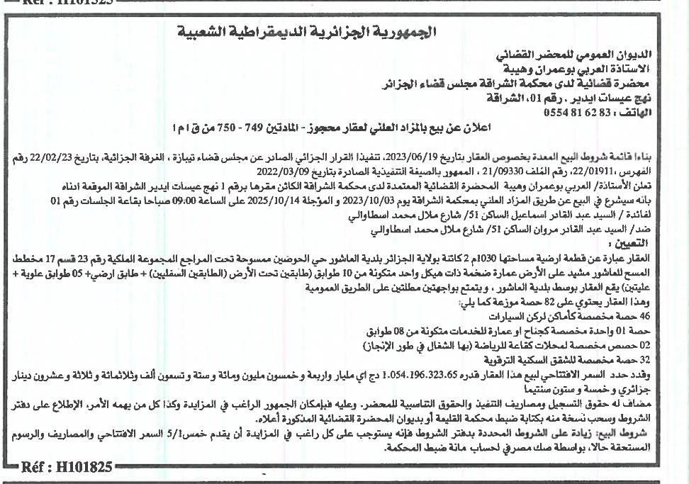 Il sera procédé à la vente au plus offrant et dernier enchérisseur le :