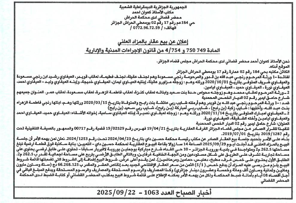 Il sera procédé à la vente au plus offrant et dernier enchérisseur le :