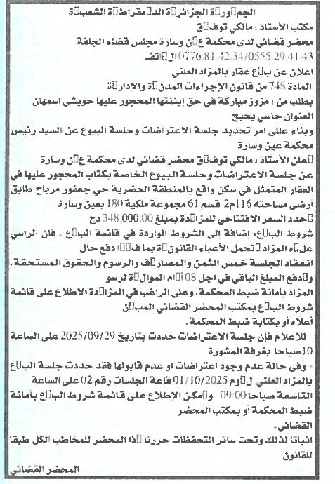 Il sera procédé à la vente au plus offrant et dernier enchérisseur le :
