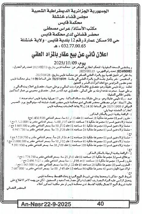 Il sera procédé à la vente au plus offrant et dernier enchérisseur le :