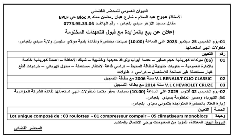 Il sera procédé à la vente au plus offrant et dernier enchérisseur le :