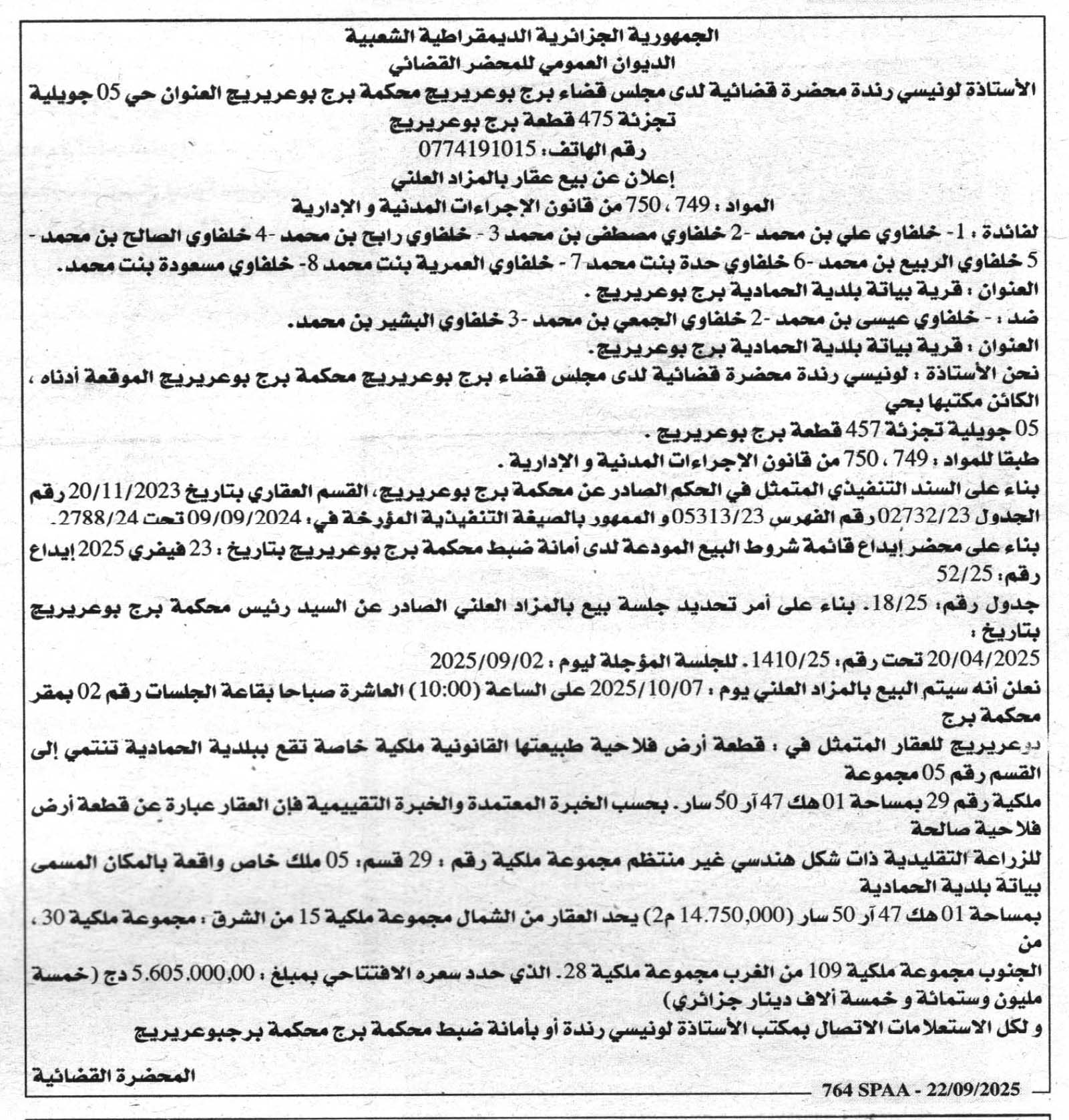 Il sera procédé à la vente au plus offrant et dernier enchérisseur le :