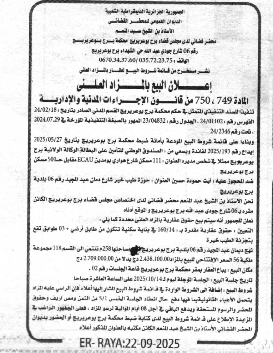 Il sera procédé à la vente au plus offrant et dernier enchérisseur le :