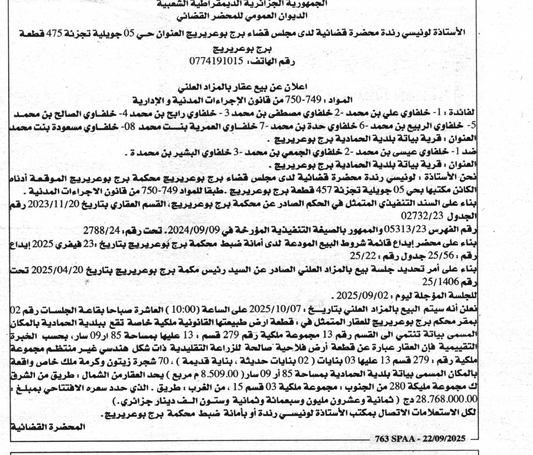 Il sera procédé à la vente au plus offrant et dernier enchérisseur le :