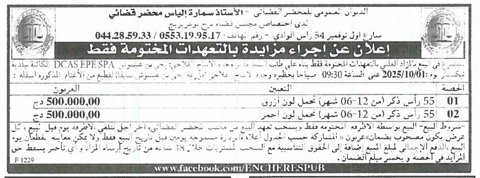 Il sera procédé à la vente au plus offrant et dernier enchérisseur le :