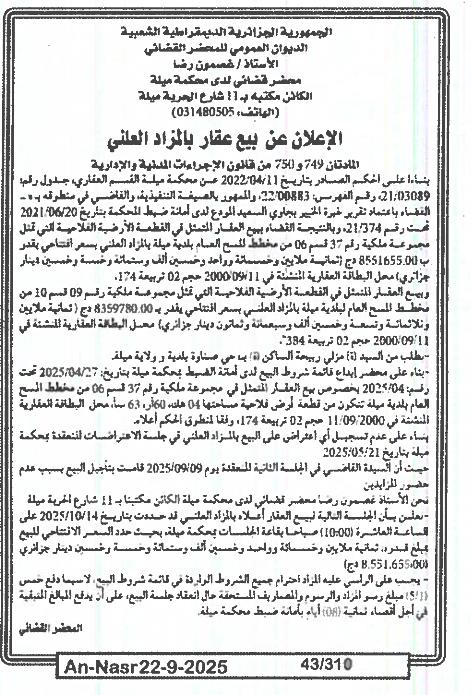 Il sera procédé à la vente au plus offrant et dernier enchérisseur le :
