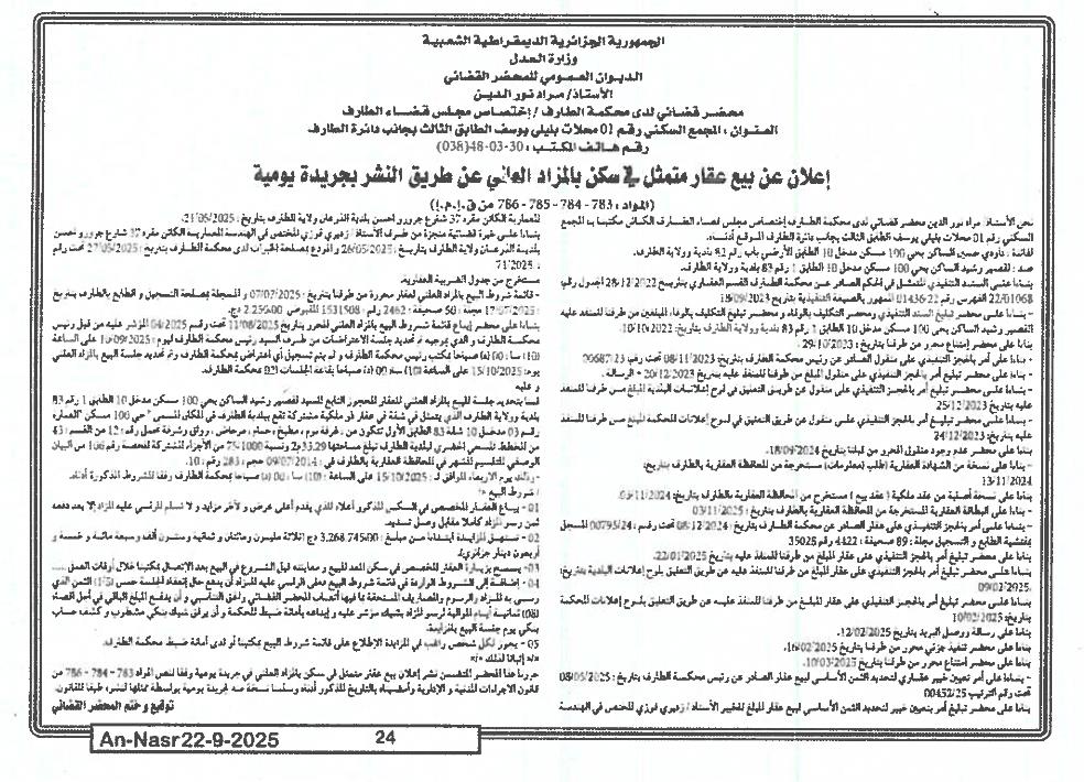 Il sera procédé à la vente au plus offrant et dernier enchérisseur le : 29/09/2025';