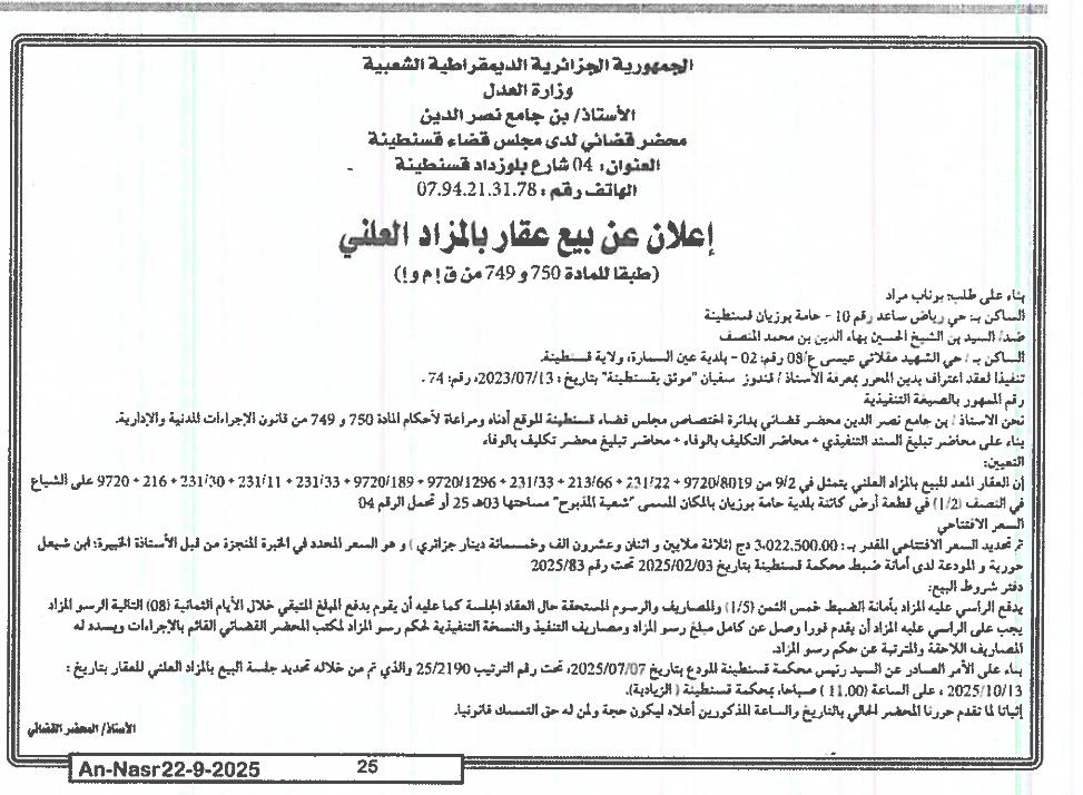 Il sera procédé à la vente au plus offrant et dernier enchérisseur le :
