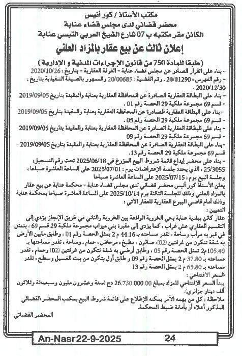 | Paru dans le journal : النصر | |