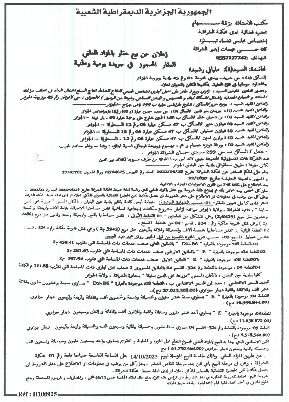 | Objet: Vente d'un immobiliers | |