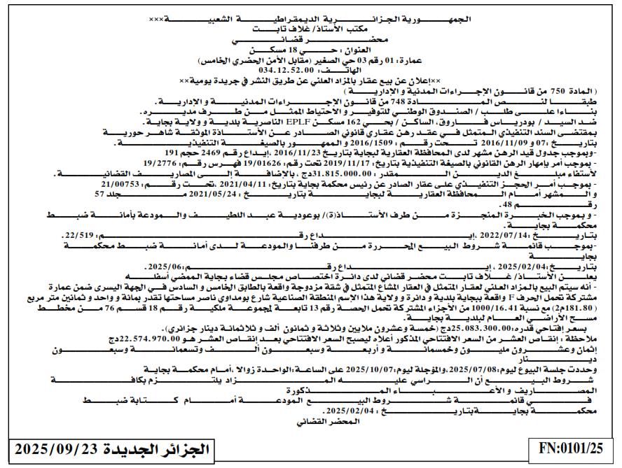 Il sera procédé à la vente au plus offrant et dernier enchérisseur le :