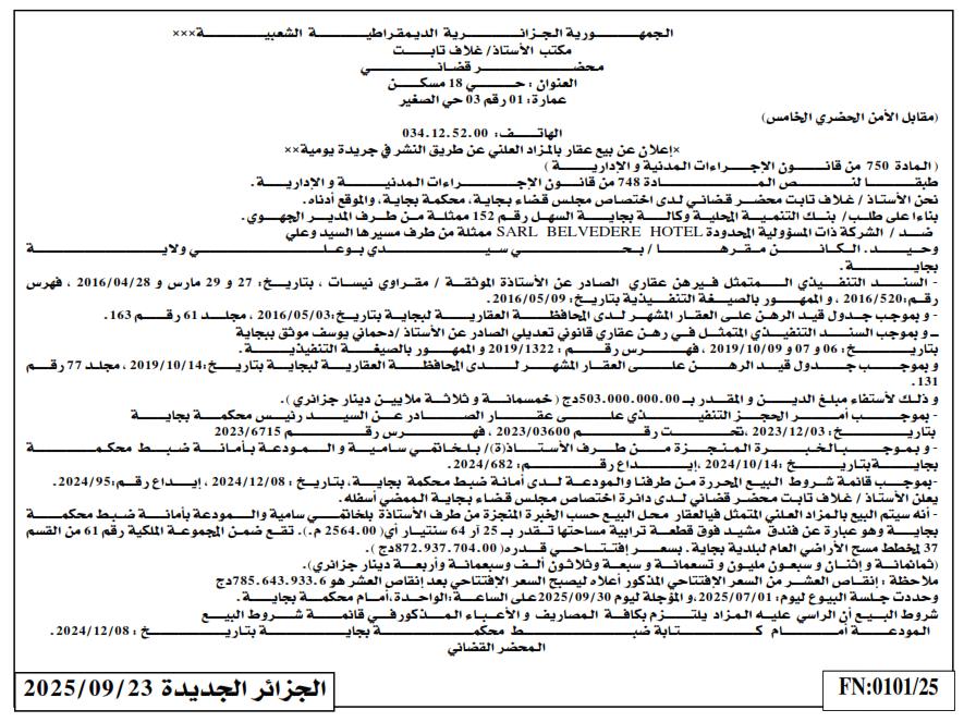 Il sera procédé à la vente au plus offrant et dernier enchérisseur le :