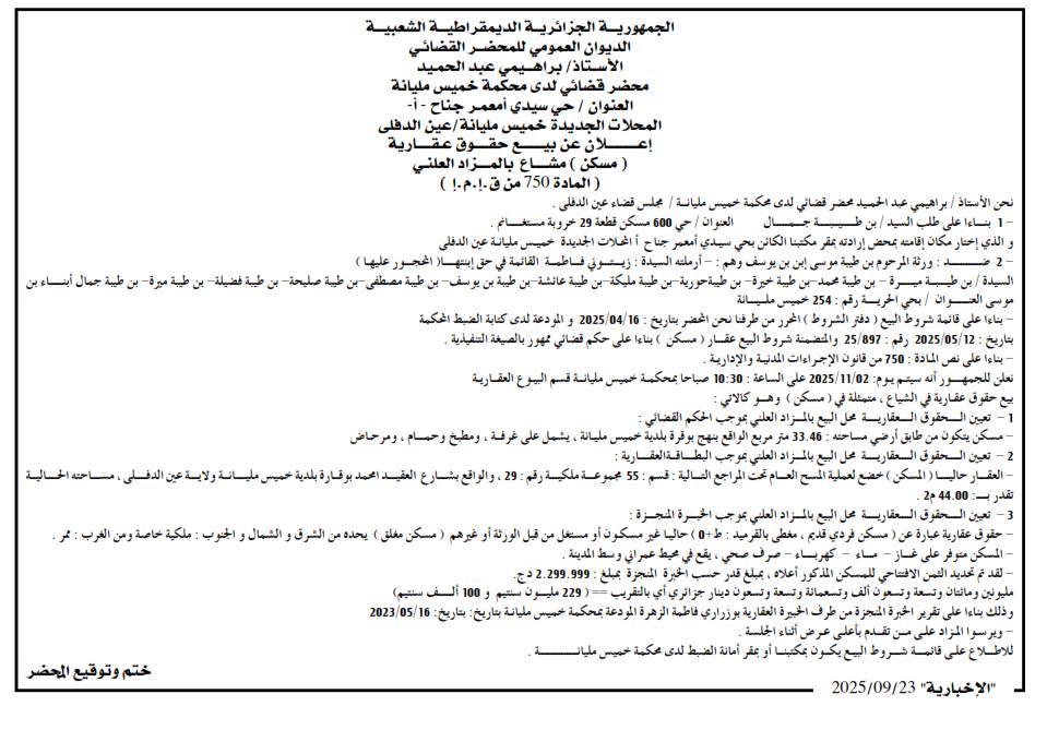 Il sera procédé à la vente au plus offrant et dernier enchérisseur le :