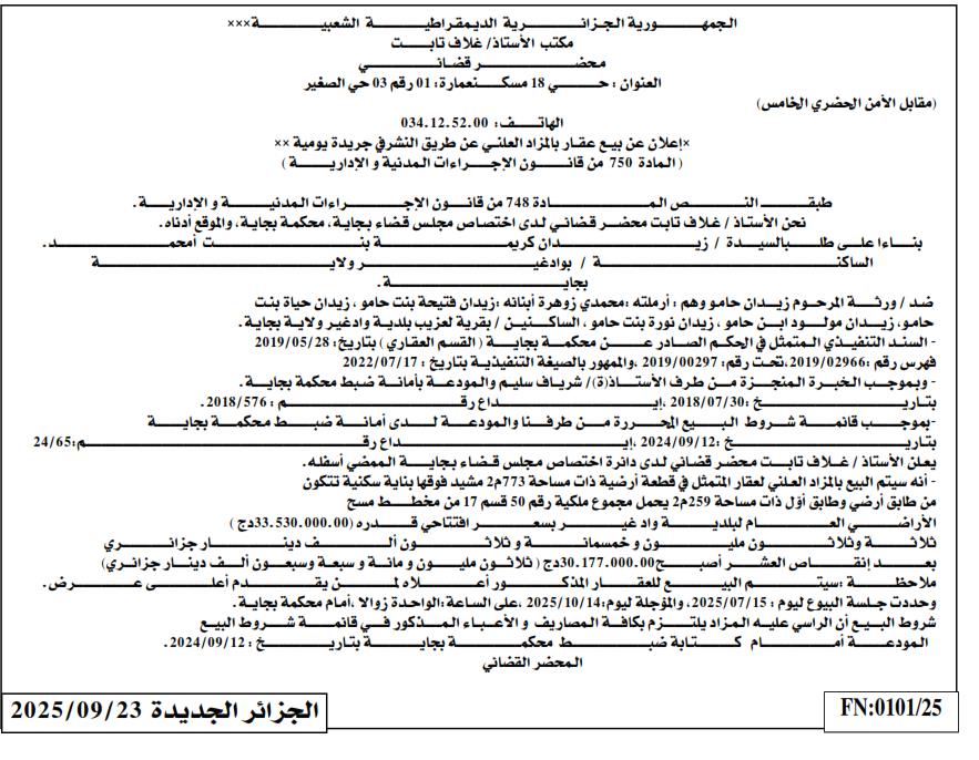 | Paru dans le journal : الجزائر الجديدة | |