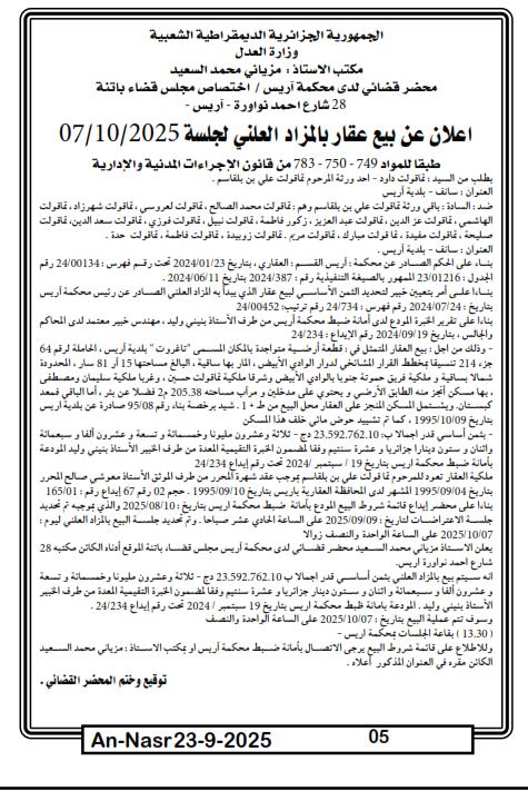 Il sera procédé à la vente au plus offrant et dernier enchérisseur le :