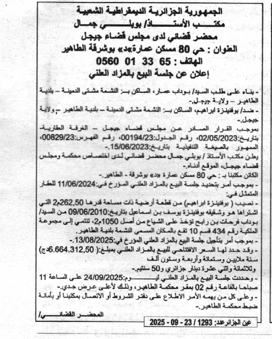 Il sera procédé à la vente au plus offrant et dernier enchérisseur le :