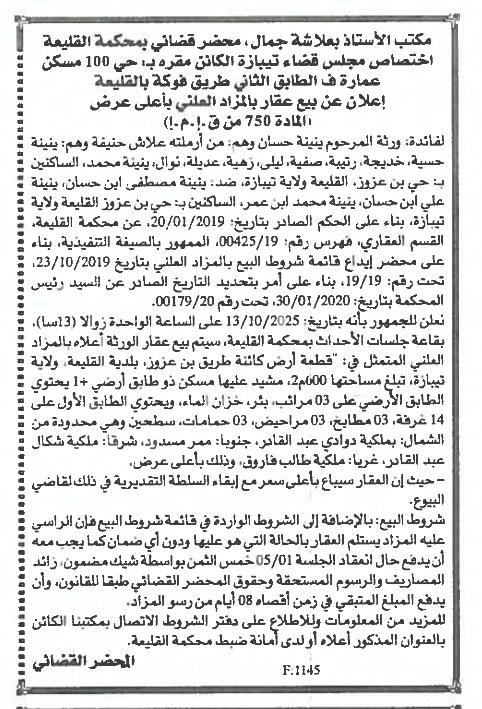 Il sera procédé à la vente au plus offrant et dernier enchérisseur le :