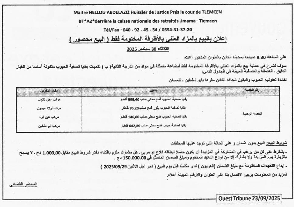 Il sera procédé à la vente au plus offrant et dernier enchérisseur le :