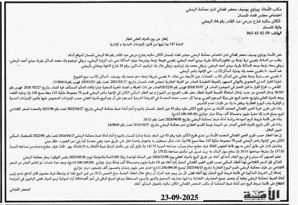 Il sera procédé à la vente au plus offrant et dernier enchérisseur le :