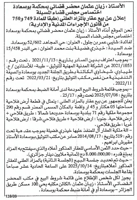 Il sera procédé à la vente au plus offrant et dernier enchérisseur le :