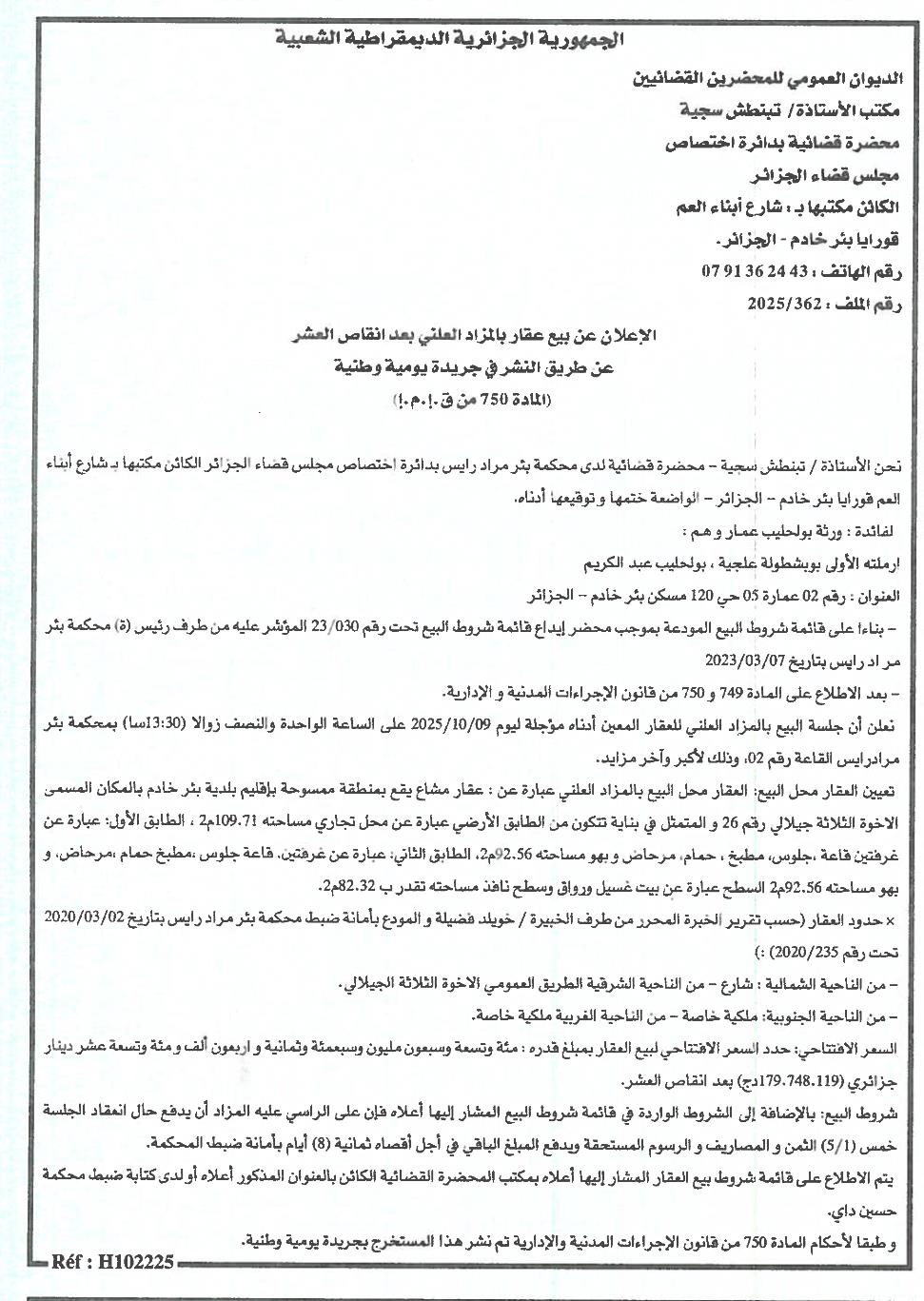 Il sera procédé à la vente au plus offrant et dernier enchérisseur le :