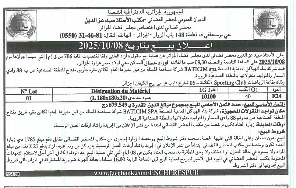 Il sera procédé à la vente au plus offrant et dernier enchérisseur le :