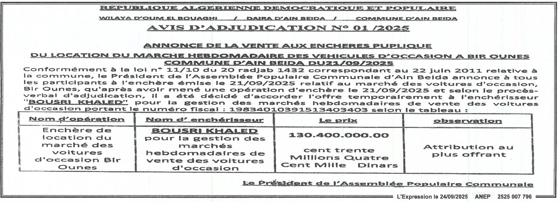| (*) LA DATE EST DONNÉE À TITRE INDICATIF, VEUILLEZ LA VÉRIFIER LORS DU RETRAIT DU CAHIER DES CHARGES OU AUPRÈS DE L\'ÉMETTEUR | |