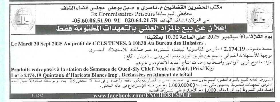 Il sera procédé à la vente au plus offrant et dernier enchérisseur le :