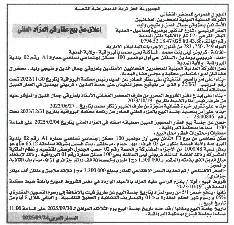 Il sera procédé à la vente au plus offrant et dernier enchérisseur le :