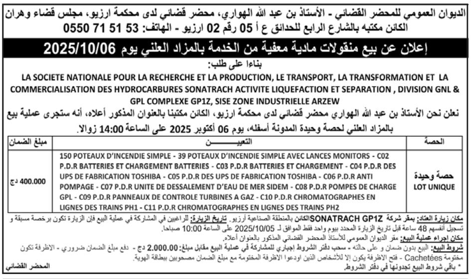 Il sera procédé à la vente au plus offrant et dernier enchérisseur le : 05/10/2025';