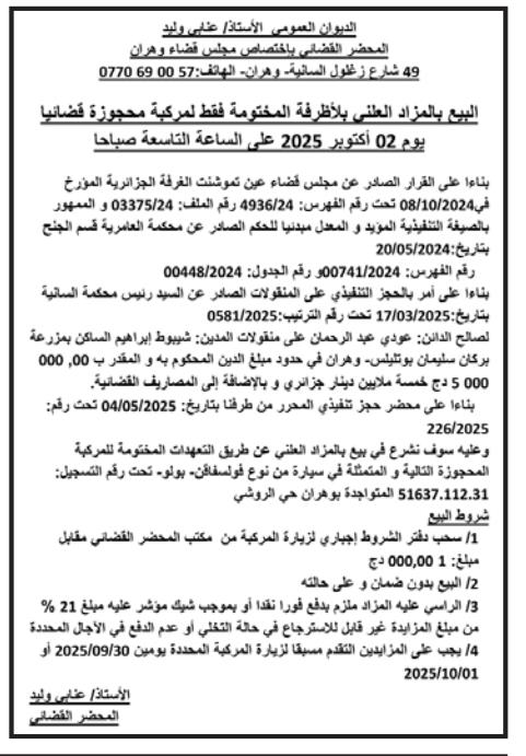 | Paru dans le journal : Le Quotidien d'Oran | |