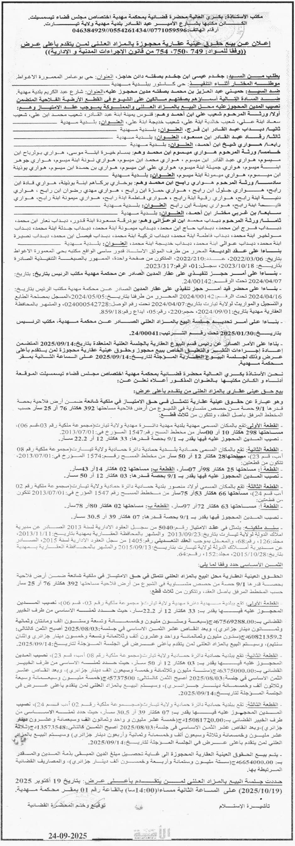 Il sera procédé à la vente au plus offrant et dernier enchérisseur le :