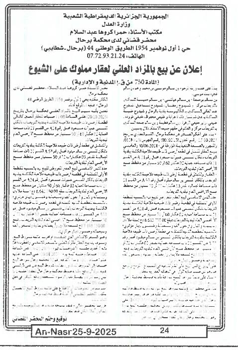 Il sera procédé à la vente au plus offrant et dernier enchérisseur le : 02/10/2025';
