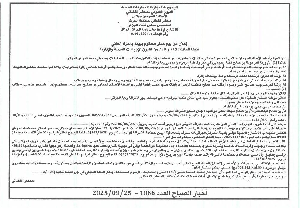 Il sera procédé à la vente au plus offrant et dernier enchérisseur le :