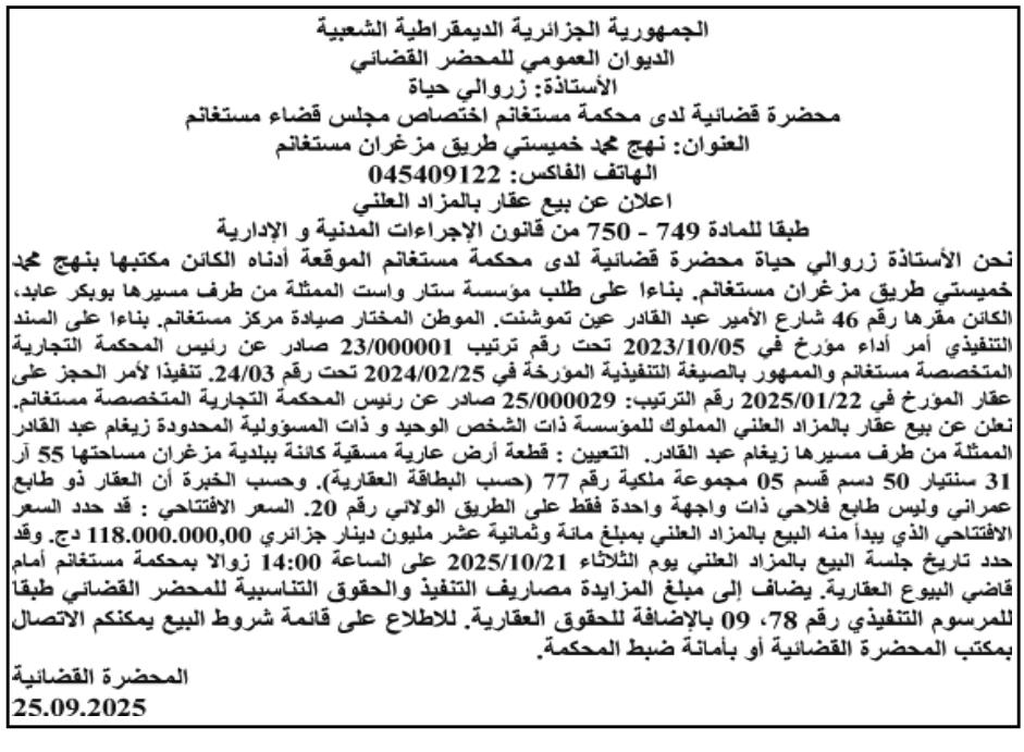Il sera procédé à la vente au plus offrant et dernier enchérisseur le :